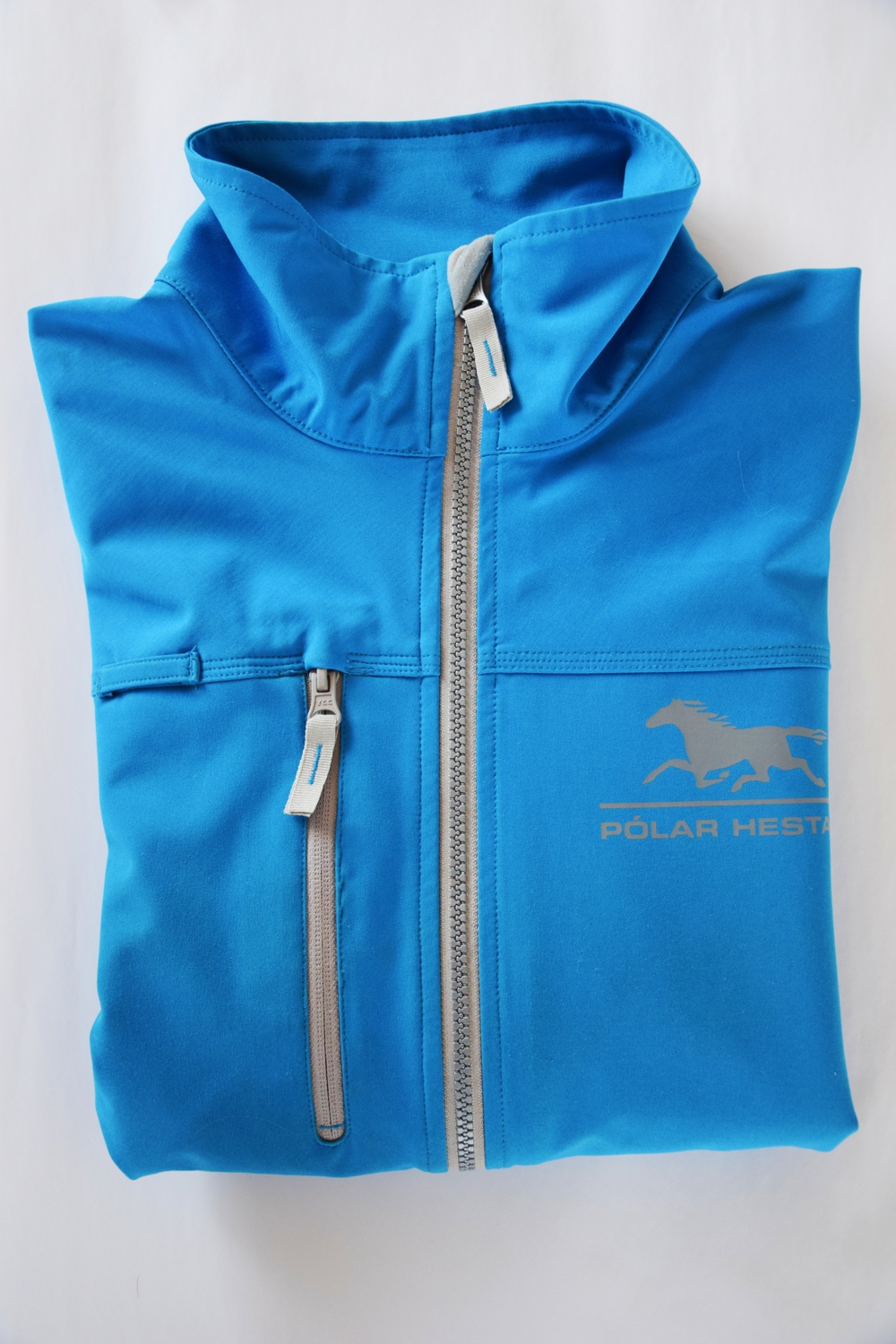 „I am not only perfect – I’m Icelandic” – Mit dieser Wertschätzung des Islandpferdes auf der Rückseite unserer Softshelljacke tragen Sie nicht nur die Erinnerung an Ihre Zeit in Island auf dem Rücken, sondern sind gleichzeitig gut gegen Wind und Wetter gewappnet. Auf der Brust der leuchtend blauen Jacke ist ein Pólar Hestar-Schriftzug aufgedruckt. Sie besitzt zwei seitliche Eingriffstaschen, sowie eine Brusttasche auf der rechten Seite. Alle drei Taschen sind durch einen Reißverschluss verschließbar. Die Jacke ist in den Größen S – XXXL verfügbar und besteht aus 92% Polyester und 8% Elastan. Preis pro Jacke: 10.500 ISK / 75 €.